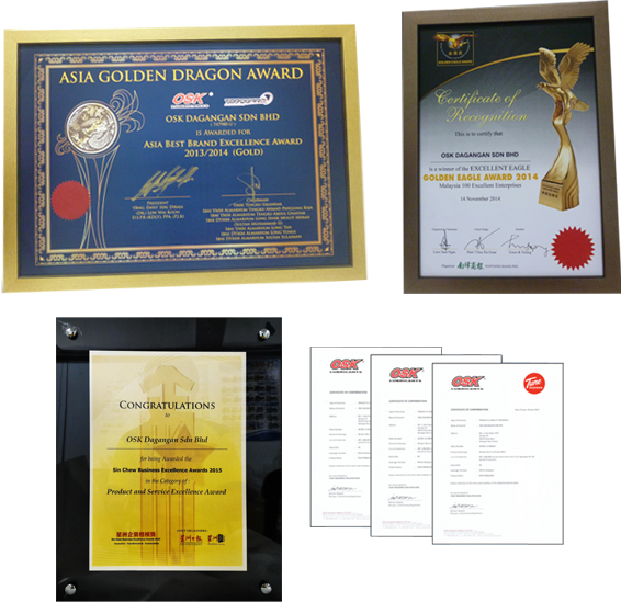 在2013 年,OSK 润滑油荣获亚洲金龙奖推荐委员会推荐 “亚洲最佳产品质量奖 2013/14”。