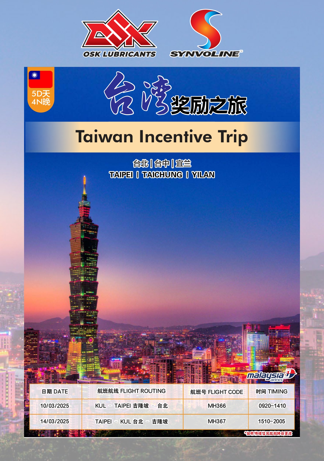 5 Days and 4 Nights in Taiwan from 10th March 2025 to 14th March 2025.