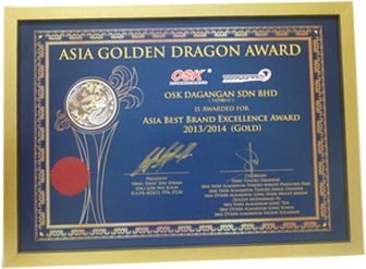OSK Lubricants was among 32 prestigious Malaysian brands awarded the conveted ASIA Golden Dragon Award