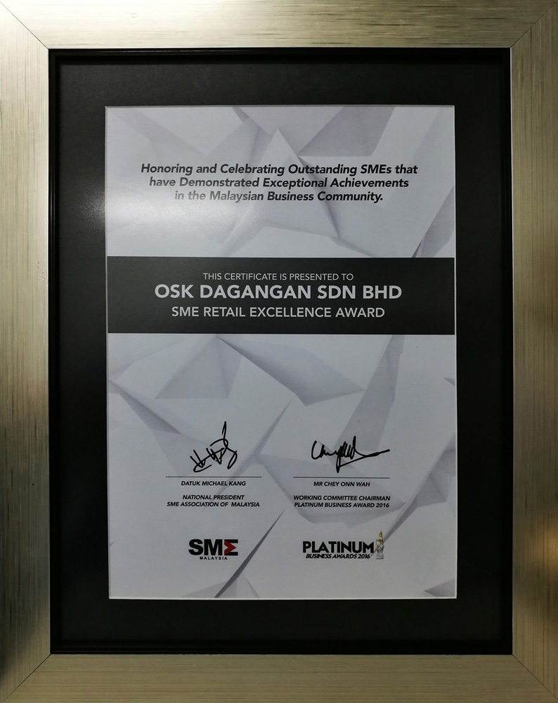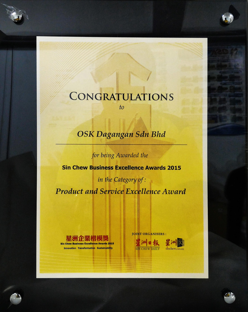 2013 / 2014 for Asia's Best Brand Excellence Award (GOLD) presented by YMM Tengku Iskandar Ibni YMM Almarhum Tengku Ahmad Panglima Raja.