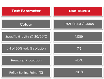 OSK RC200 Long Life Radiator Coolant is used as a heat exchange medium in the cooling system. It is used to cool water cooled engines in the automotive industry. This blend prevents rusting of metals in the cooling system, overheating in summer and freezing in winter. It is cooling Liquid that can be used maintenance-free for long term.