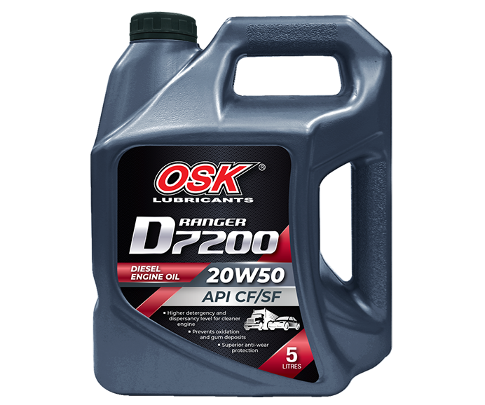 OSK D7200 heavy duty is specially designed for use in diesel engines under moderate and severe conditions. The high level of alkaline reserve makes it particular suitable for use with longer oil drain interval. It also satisfies the requirements of API CF/SF performance lubricant.