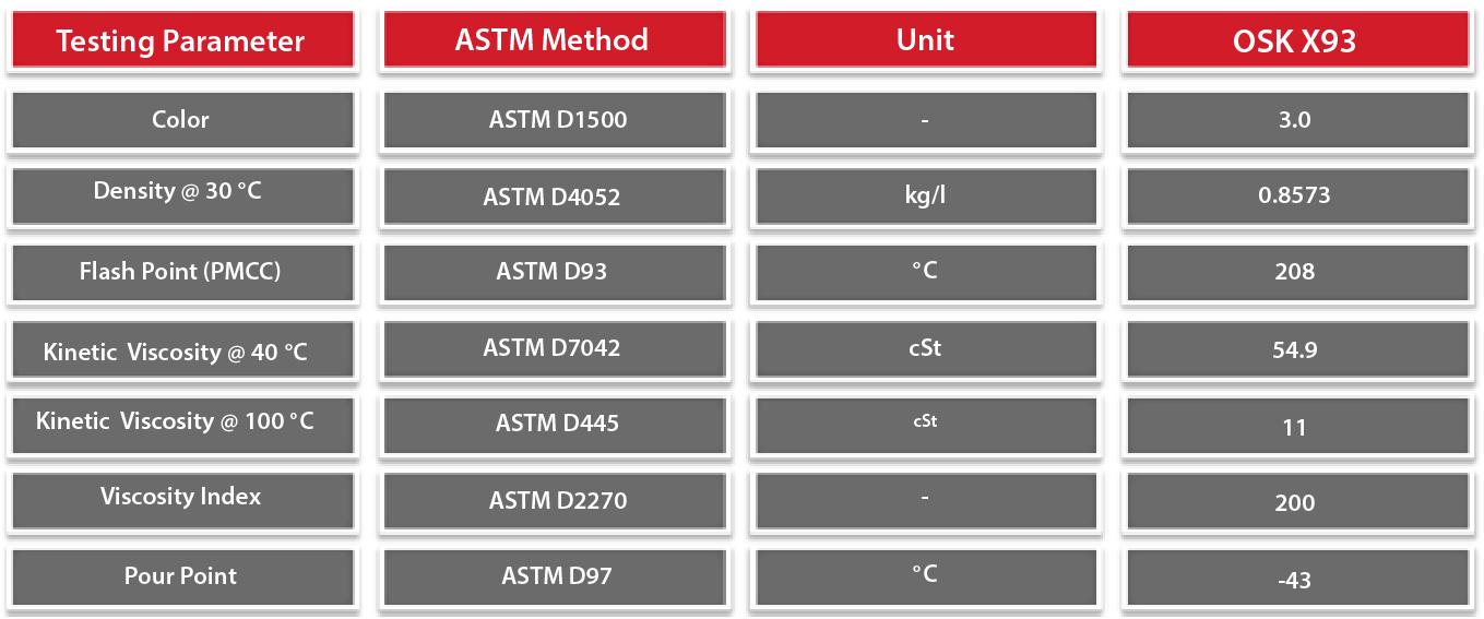 OSK X93 is recommended to use in most of the modern turbocharged, supercharged and naturally aspirated petrol, diesel engines. OSK X93 also exceed most of the European, Japanese, and American car manufactures’ requirements.