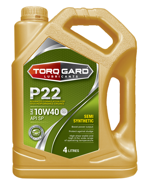 TORQGARD P22 is a high quality 10W40 semi synthetic engine oil with superior metal protector. Specially designed to meet the specification of API SP for use in high performance gasoline and diesel engines operating under most severe and high temperature conditions. It also exceeds the requirements standard of all domestic and foreign automotive manufacturers who specify API SP/CF.